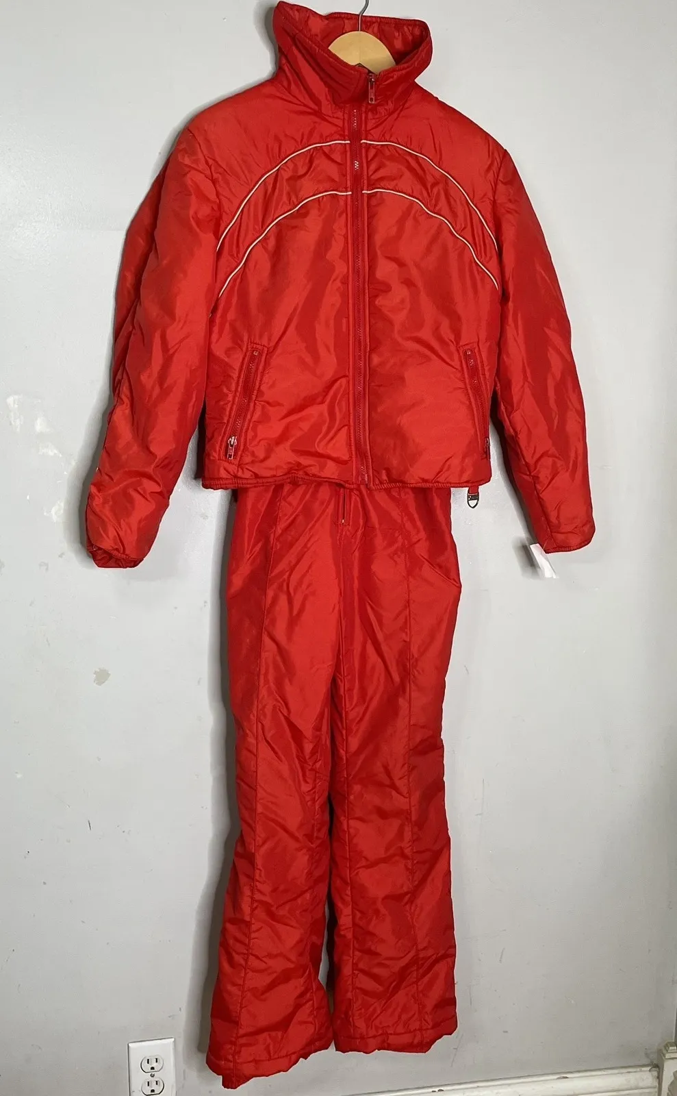 SKYR vintage ski set red bibs and jacket Medium Large - $200 - From Tiffany