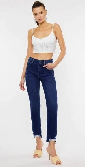 EUC. Style# KC5217D Dark wash. Regular 5 pockets, double button front closure, Zip fly. 94% Cotton, 5% Polyester, 1% Spandex. “A well-fitted slim straight jean is essential to create a versatile look. This pair of timeless denim features whiskering, fading, slight distressing details near the hemline, double button closure, and a 5-pocket design.” Size 28. Rise: 11” Inseam: 28” Waist flat across: 14.5” Smoke free home.