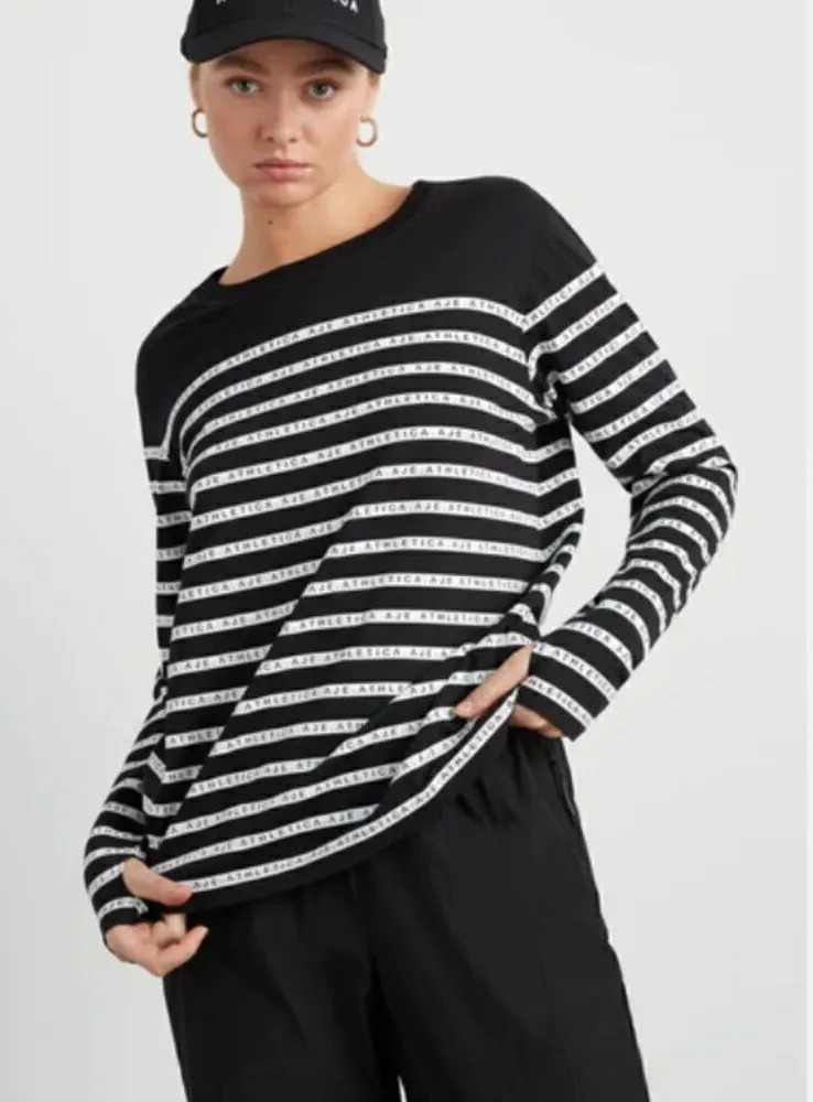 Old Navy white and black striped long sleeve sweater. - Size: Large - Material: 60% Cotton, 40% Ac... Show more