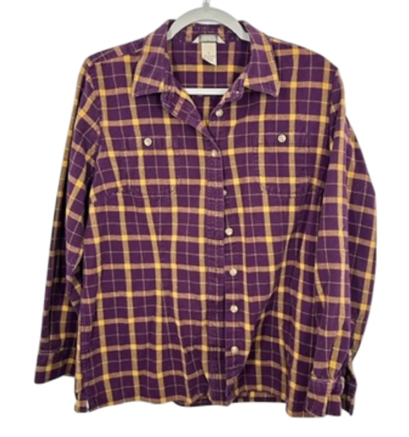 Pre-Owned in Great Condition 100% Cotton Approximate Measurements: Length: 26" Pit-Pit: 21" Cozy up in this classic Duluth Trading Co. plaid flannel shirt. The rich purple and warm yellow plaid creates a timeless look perfect for layering or wearing on its own. Featuring two chest pockets and a comfortable, relaxed fit, this shirt offers both style and practicality. Embrace the comfort and durability for everyday adventures or casual outings.