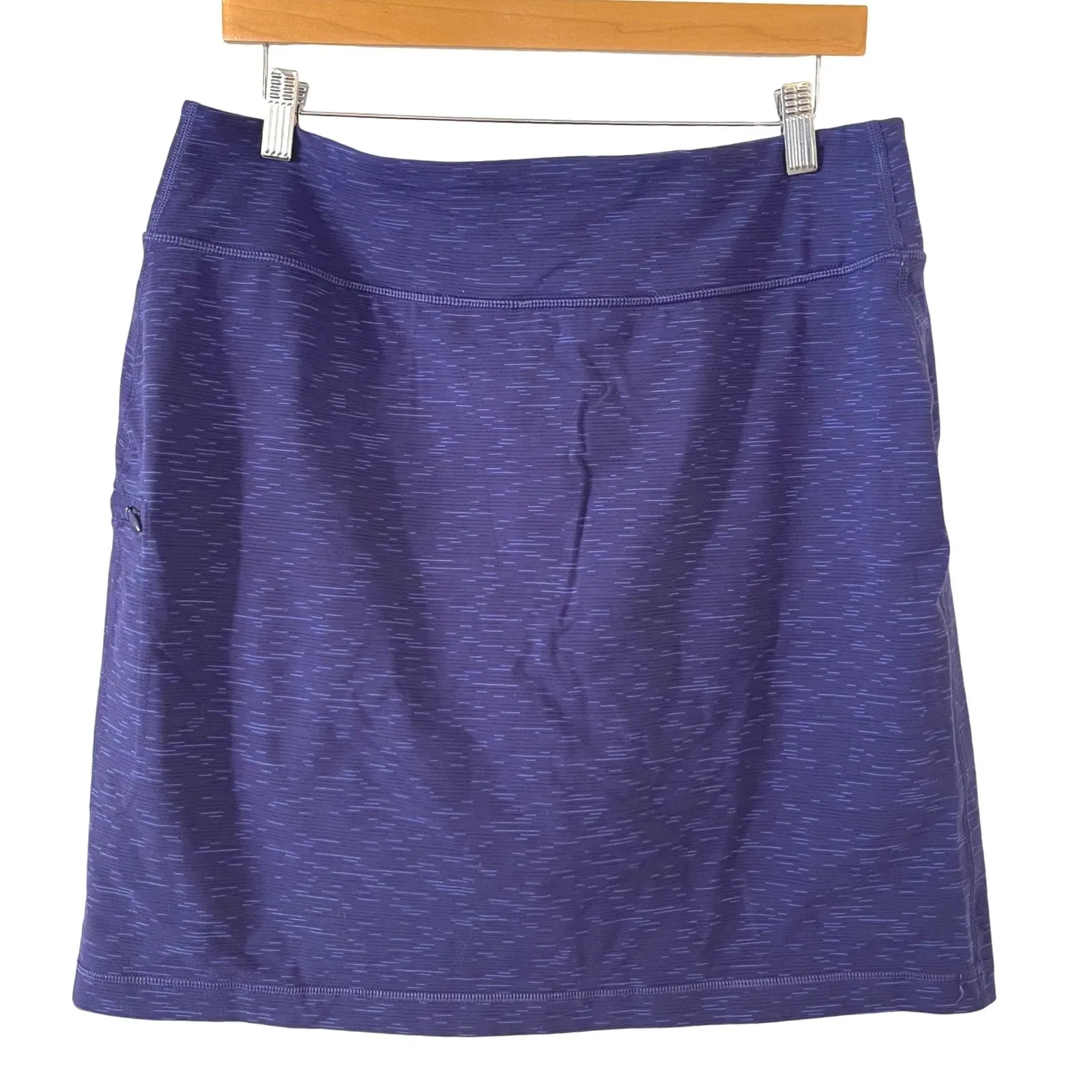 Stylish and functional skort from Duluth Trading Co. This skort features a comfortable and flattering design, perfect for various activities. It includes a built-in undershort for added coverage and convenience, side pocket, and a wide waistband for a secure fit. The skort has a subtle textured pattern, adding visual interest while maintaining a sporty aesthetic. Measurements: • Length: 19 inches • Waist: 17 inches Department: Women Type: Skort Style: Athletic Performance/Activity: Golf, Tennis, Walking, Hiking, Gym & Training Skirt Length: Knee Length Fit: Athletic Pattern: Striped Features: Pockets, Elastic Waist, Stretch, Sun Protection Closure: Pull On Occasion: Activewear, Casual Material: 100% Nylon Keywords: skort, Duluth Trading Co, athletic skort, golf skirt, tennis skirt, purple skort, women's skort, activewear, sports skirt, skirt with shorts, workout skort, performance skort