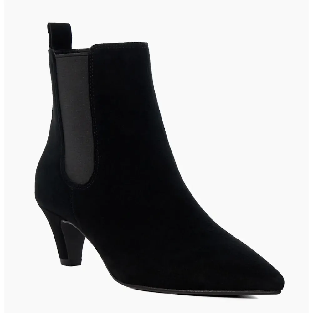 Dune London Comfort Kitten Chelsea Ankle Boots - New In Box Size - 7.5/8 US 38 US - Better for a 7.5 because of the more pointed toe. Color - Obvious Black Material - Suede -Designed for whatever your week has in store, this versatile mid heel ankle boot will team perfectly with pants, jeans, and dresses -Crafted from premium soft suede, this pointed-toe design features elasticated side panels and a rear pull tab -Heel Measurement: 2.2’’ -Fastening: Slip-On -Sole Material: Synthetic -Lining Material: Synthetic Retail: $180 *Boots come as shown in pictures of the listing - Please review all photos before purchase* *Great Condition! New In Box Ships fast Ships from a smoke and pet free home