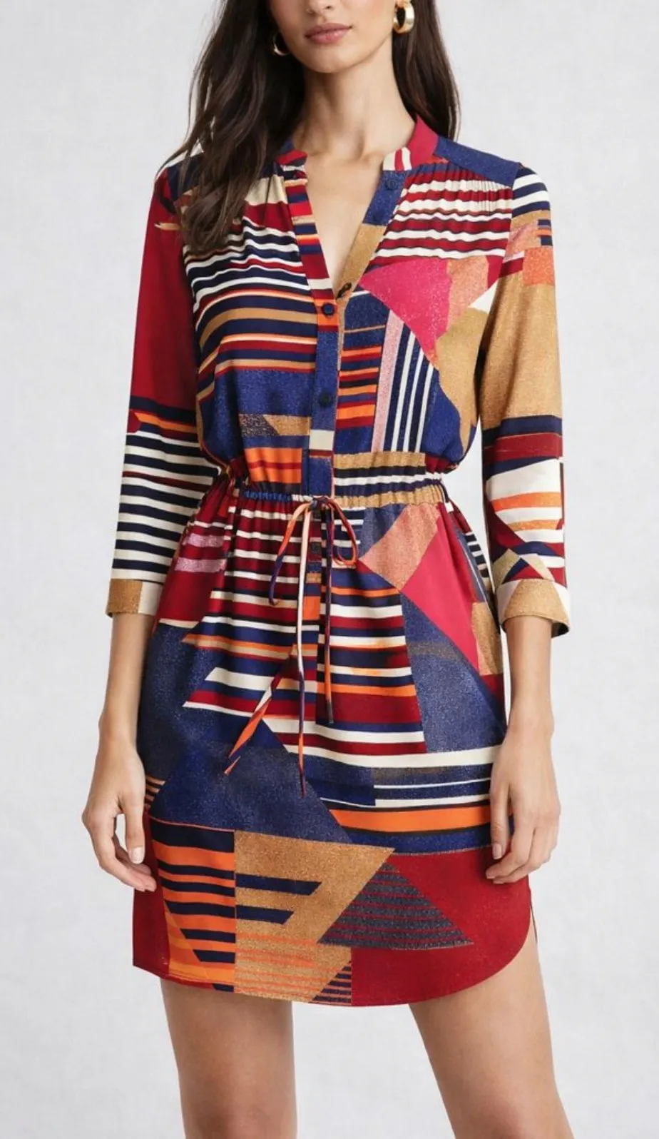 Small pull on one cuff, as shown in photo. Minor discoloration on brand tag. Size 2 Multicolor geome... Show more