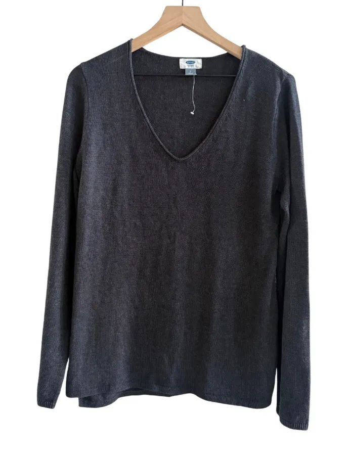 Classic Old Navy gray V-neck sweater, perfect for layering or wearing on its own. Lightweight knit w... Show more
