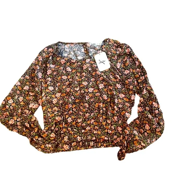 Elodie Lily Long Sleeve Top Purple Floral Open Back band Keyhole back NWT D Size L - $29 - From kara