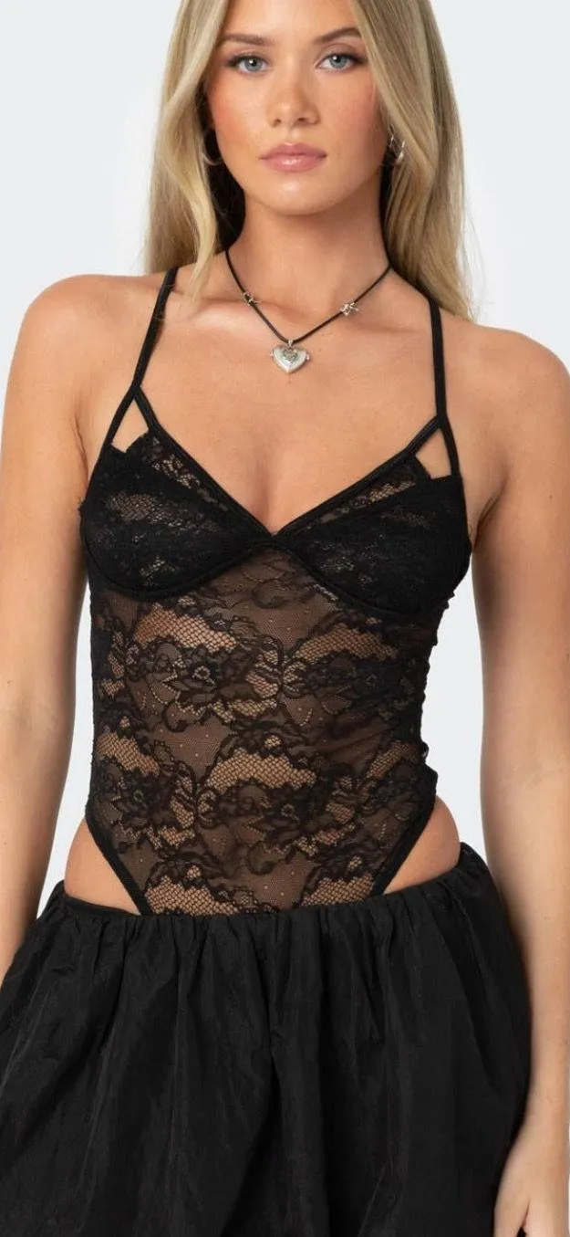Edikted strappy sheer lace bodysuit in black - $23 (64% Off Retail) New With Tags - From kelly