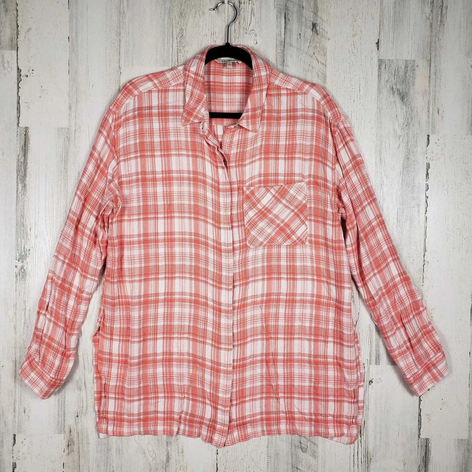 Calvin Klein Jeans Coral Orange Plaid Long Sleeve Button Down Shirt Women's Size Large Coral orange... Show more