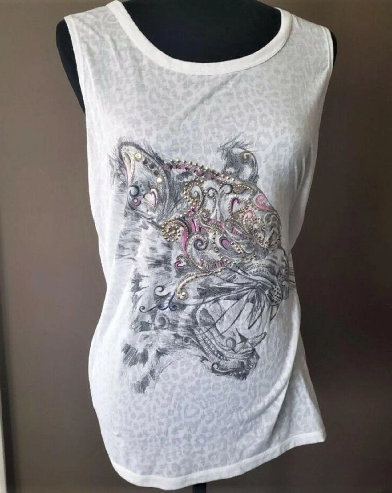 River Island Sleeveless T-Shirt White with Leopard Design Size 14 - New No Tags - $28 - From Pretty