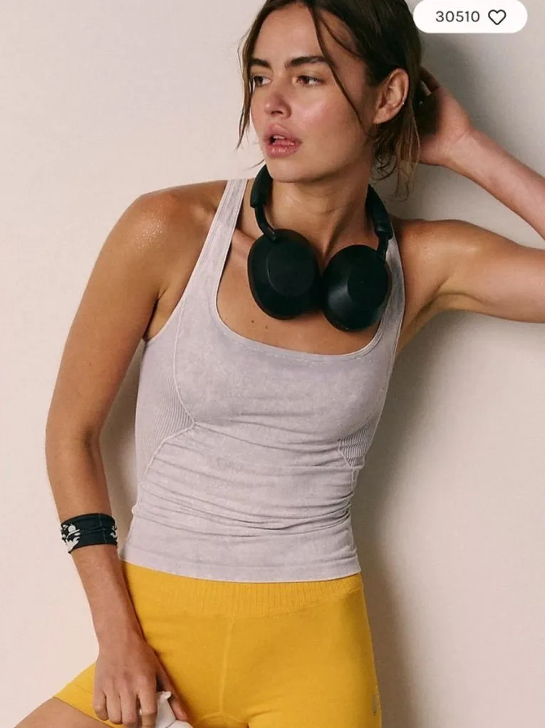 (IR) NWOT Free People Movement Good Karma Long Tank in Vintage Ice Grey Silver Size undefined - $58 - From Kenzogracie