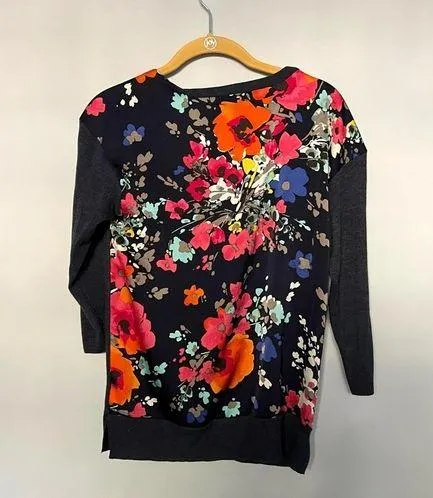 Merona Navy Blue Floral Cardigan Sweater V-neckline with buttons down the front 3/4 sleeves Knit sle... Show more