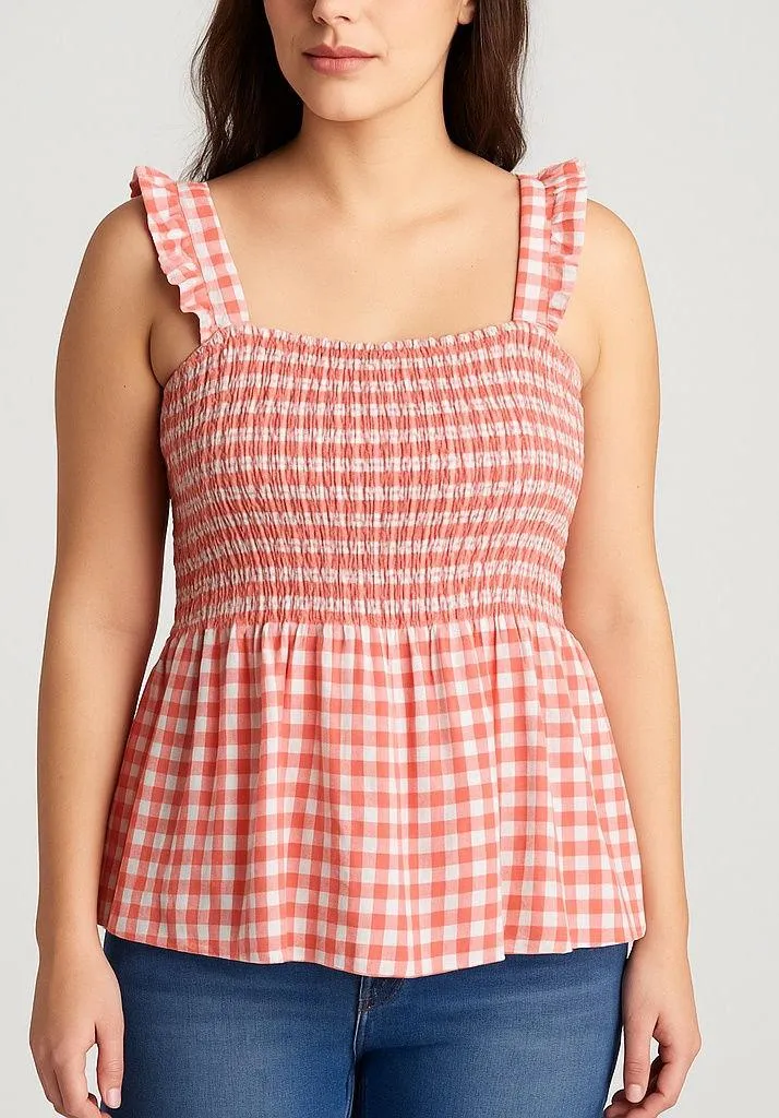 Description: Cute and summery, this Freshman 1996 red and white gingham smocked tank top is perfect... Show more