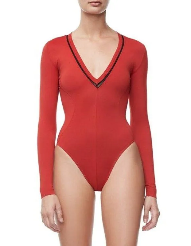 Good American Low Down Bodysuit in Red Black Net Accent NWOT Size 5 US XXL Minimalist, Normcore, St... Show more