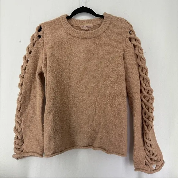 Philosophy Sweater Wool Blend Braided Arms Womans Size M Soft Rose Pink Size M - $29 - From Reaper