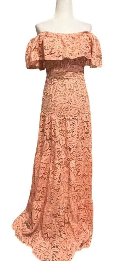 NWT dress the population Reese of the Shoulder rose petal lace maxi dress XS 🥰 this dress is stunn... Show more