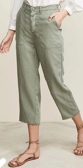 DL1961 Lorimer High Waist Straight Leg Pants size small in light olive green NWT new with tags Measurements: 15” waist 11.25” rise 24” inseam Woven with linen for a lightweight feel, these high-rise pants feature frayed raw hems and an easy fit for a relaxed everyday look. Button fly; ties at back waist Front and back patch pockets 88% Tencel® lyocell, 12% linen Tencel® lyocell is sustainably produced fiber made with closed-loop processing Machine wash, tumble dry