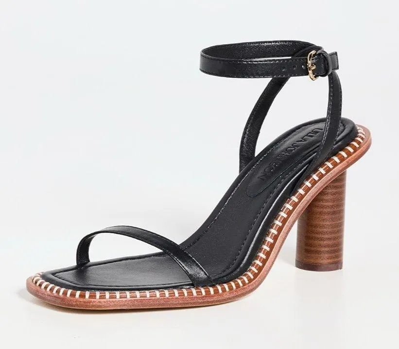 New without Box Ulla Johnson Lina Black Brown High Heel Sandal Shoes. Whipstitching around the foo... Show more