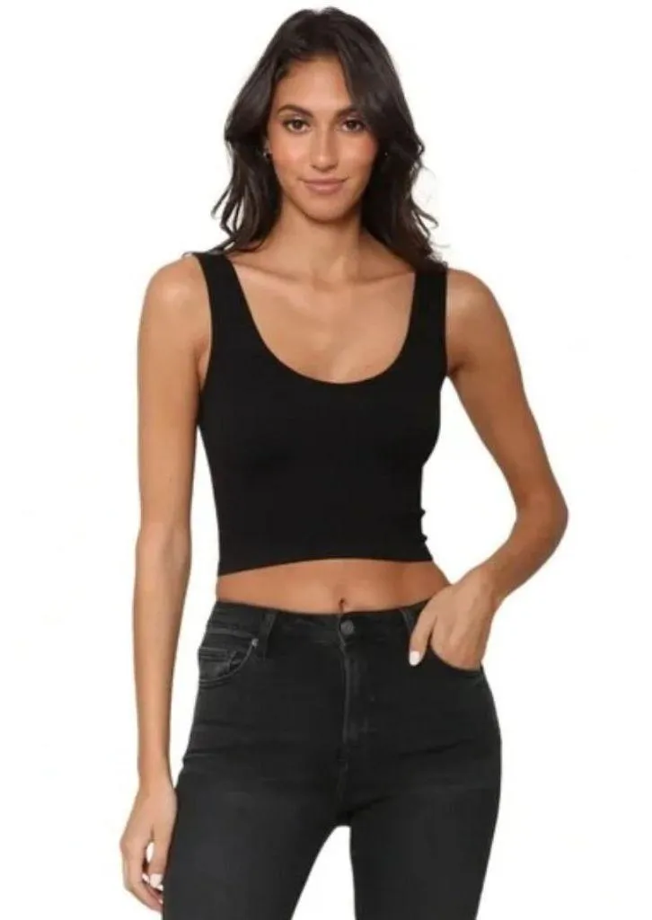 Suzette Collection Black Seamless Ribbed Cropped Tank Top Good used condition, minimal signs of wea... Show more