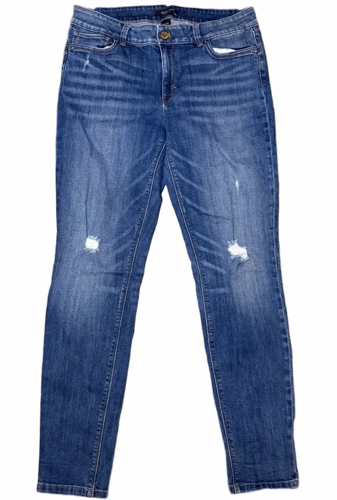 Chic dark blue skinny jeans. Sleek and stylish design. Perfect for versatile wear. WHBM (White House... Show more