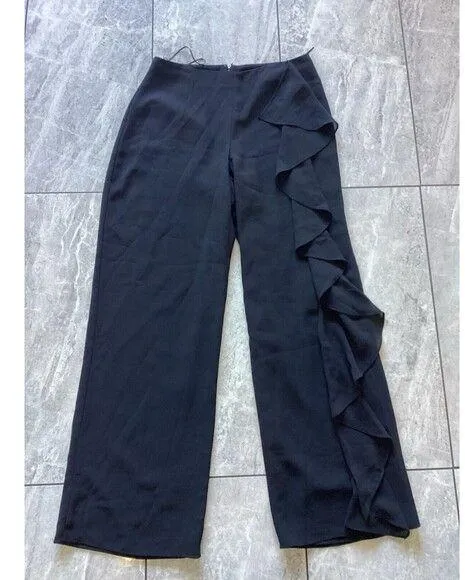 JS Boutique Black Ruffle Straight Leg Pants Crepe High Rise 8 - $34 - From Shayna