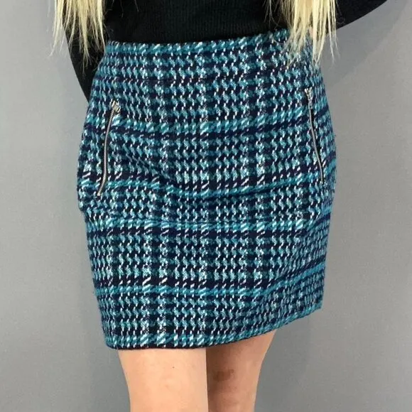 Loft Blue Navy Tweed Houndstooth Zip Pocket Mini Skirt Sz Loft Size 6 Blue Boucle Tweed Skirt A-line... Show more