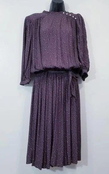 Vintage 70's 80's Dress Nicole Miller Pleated Printed High Neck, Long Sleeves, Rare Pattern size 6... Show more
