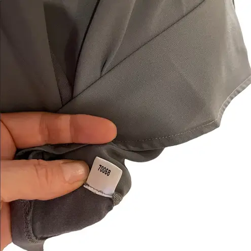 Ann Taylor Factory Gray Long Sleeve V-Neck Pull On Silver Button Sleeve Blouse Size XS Front is poly... Show more