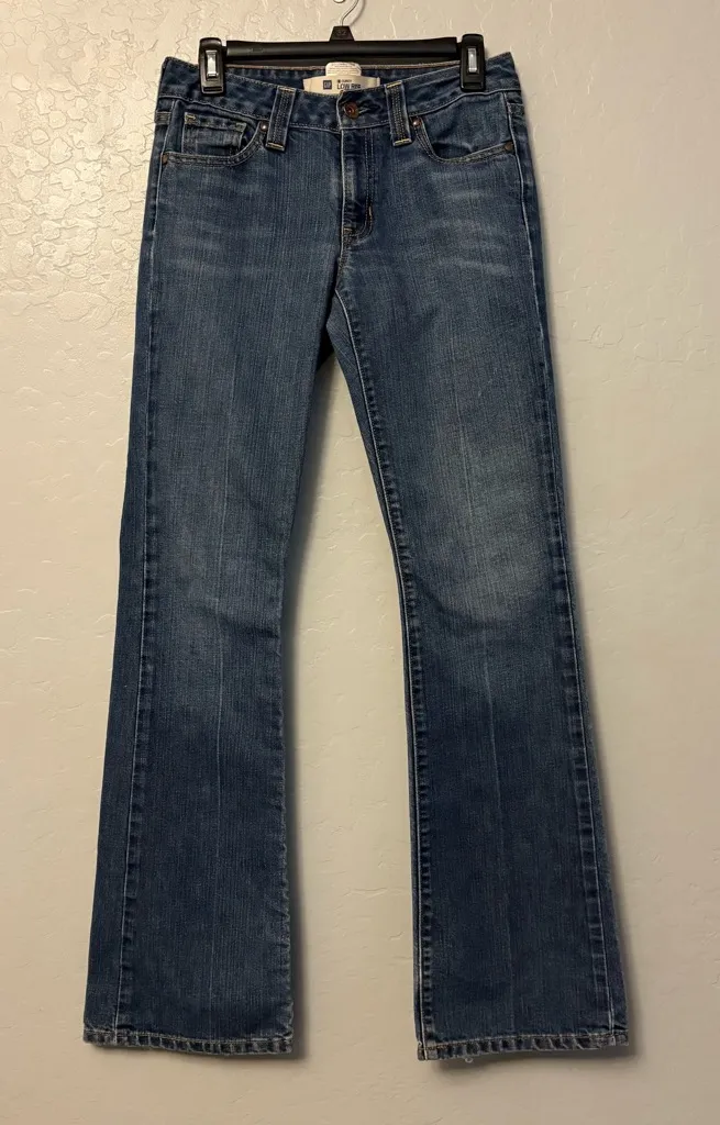 Gap curvy low rise women's jeans Medium wash 5 pockets Belt loops size 4 long Approximate lay fla... Show more