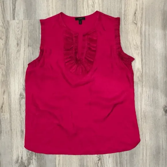 J. Crew 100% Silk Ruffle Neck Sleeveless Top Slit V Neck Hot Pink Size 12 Tall - $32 - From Alyssa