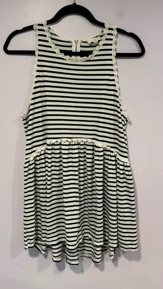 Size small black and white stripe POL flowy tank top with floral detailing