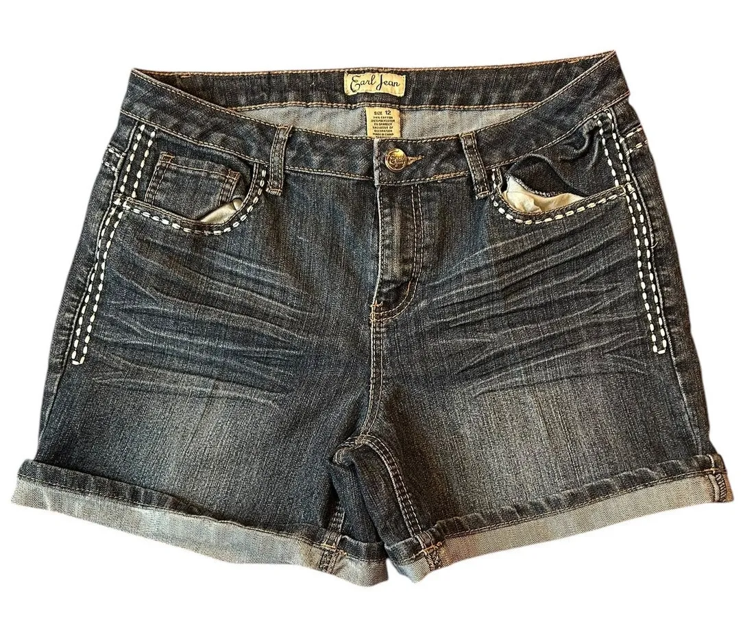 Western Denim Jean Shorts EARL JEAN Embellished Beaded Embroidered Cowboy Cowgirl Stretch Women's Size 12, Leather, whipstich, daisy dukes Size: Women's 12 or 31 Inseam: 5 inch Measurements: See photos Condition: Excellent preowned condition. No snags, stains, tears, pilling Western, Cowgirl, Coastal cowgirl, Cowboy, Coastal cowboy, daisy dukes, Boho, boho chic, festival, Bohemian, Biker, Leather, Studded, Accents