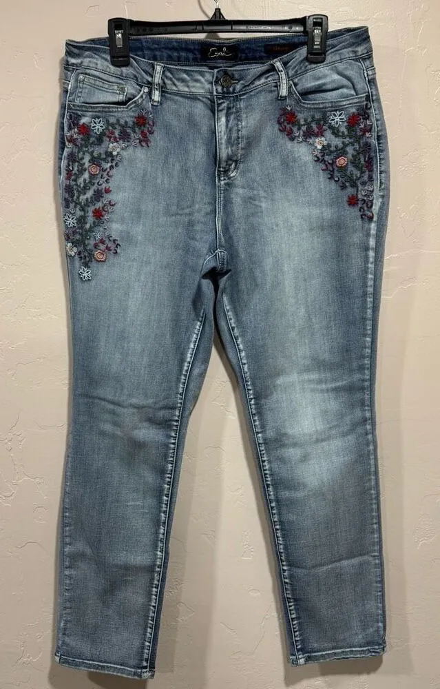 Earl Jeans Skinny Ankle Jeans Women's Size 16 Embroidered Flowers Blue - $34 - From Tessa