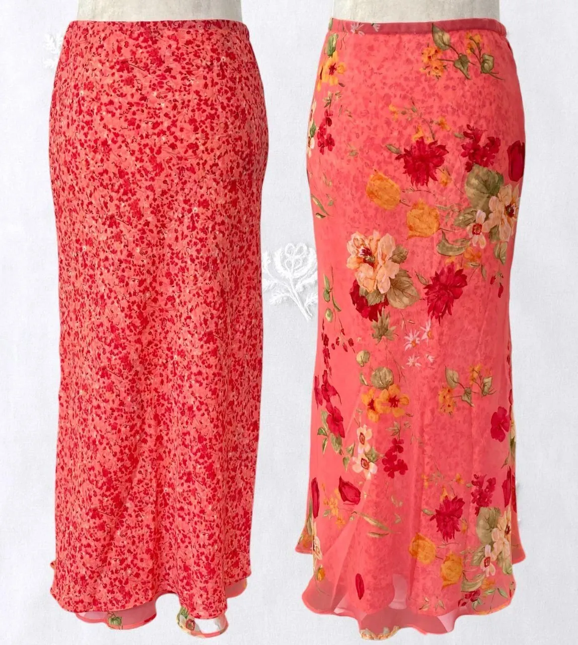 🧚 Early 2000's Floral Fairy Reversible Maxi Skirt 🧚 ༓ Brand & Size tags non existent, since it is fully reversible! ༓ does fit S to M best, check measurements below! ༓ stunning pink orange mesh flower floral maxi skirt ༓ stretchy waist, reverse it and get a different skirt! ༓ the perfect Y2K whimsygoth fairy coquette piece Measurements: ༓ single waist: 12-17"" ༓ length 34" Tags: #whimsygoth #y2k #coquette #fairy #whimsical