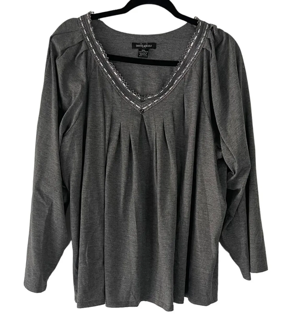 Earth Angels Women's Plus Size XXL Grey Babydoll Long Sleeve Top Long sleeves Embroidered trim... Show more