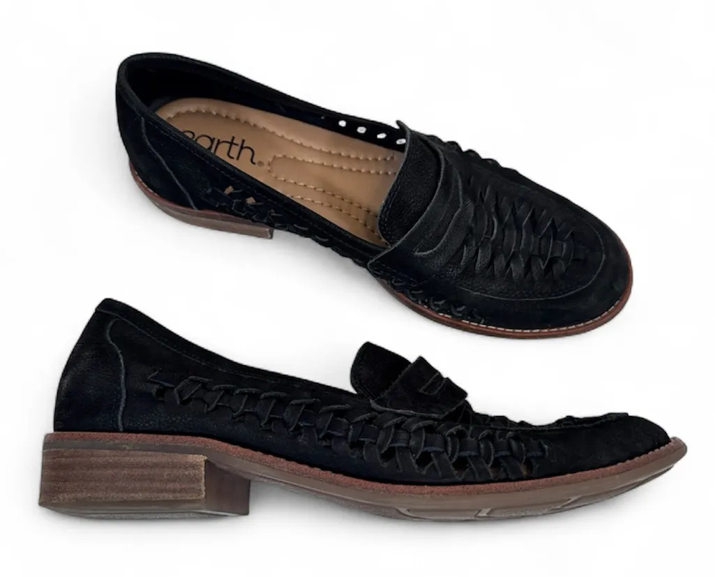 Earth Black Suede Leather Woven Loafers Womens 7 Classic Preppy Fall Flats Shoes - $35 - From Lisa