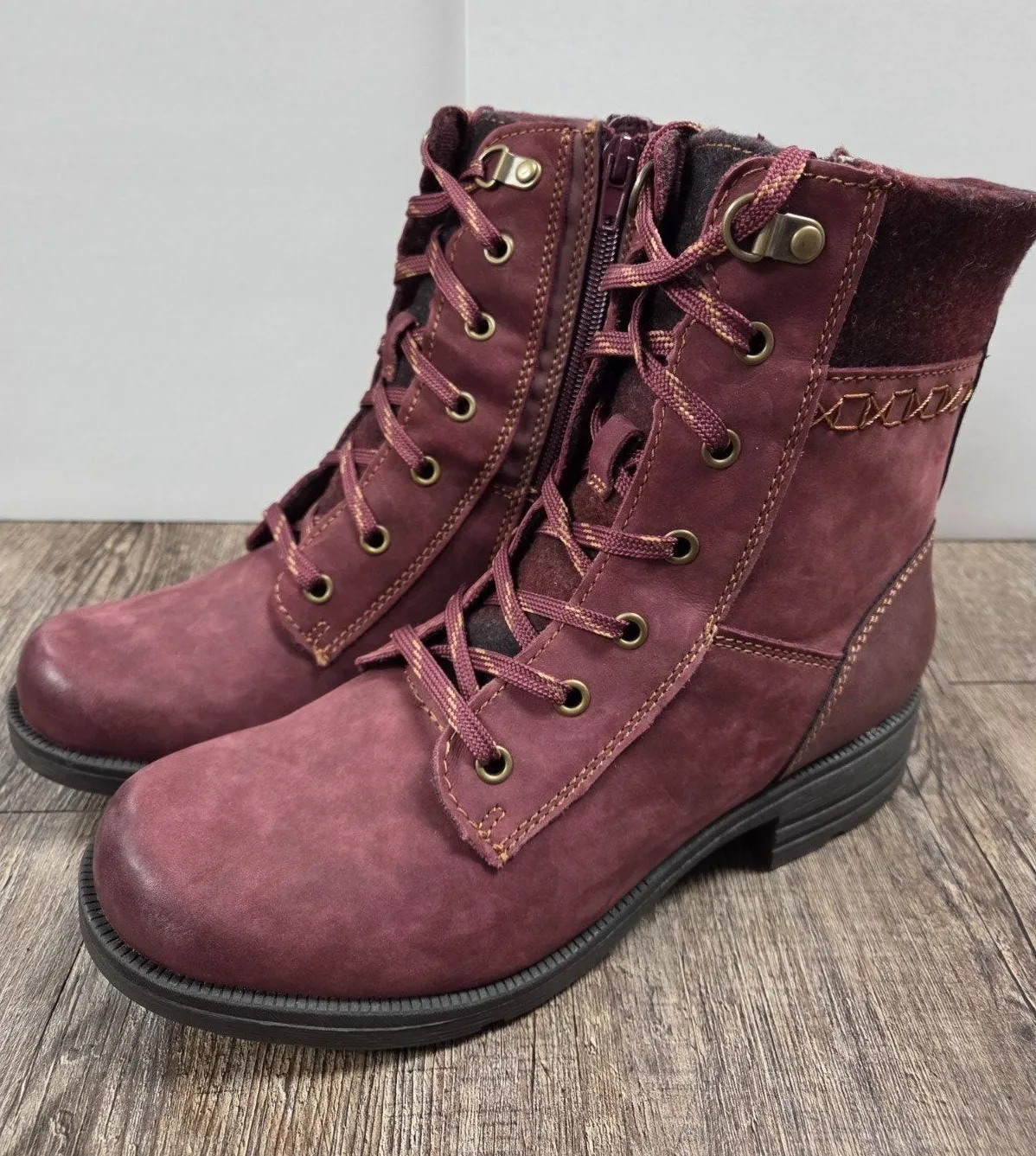 Earth Origins Burgundy Red Leather Lace Up Moto Boots Rowan Wide US 9 - $40 - From Mary