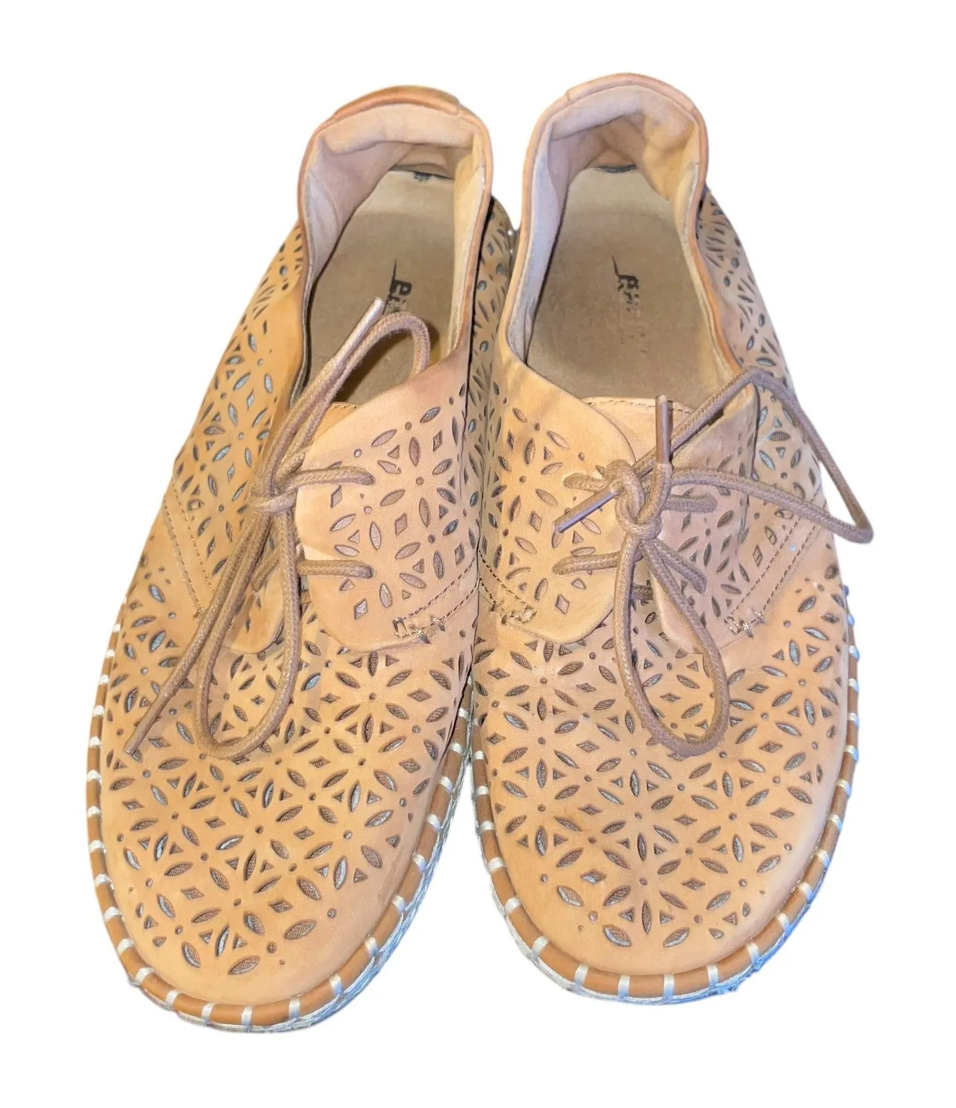 The Earth Pax Sand Brown Perforated Leather Lace Up Casual Oxfords Shoes for women in size 8.5 are a... Show more