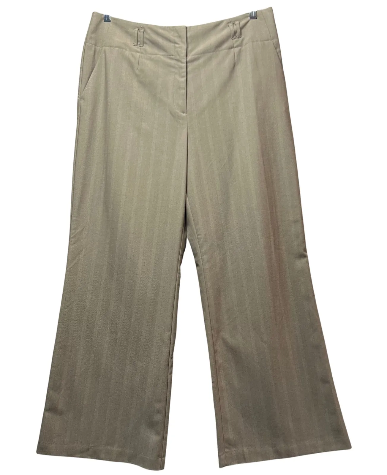 East 5th wide-leg dress pants featuring a subtle herringbone pattern. These trousers offer a flattering silhouette with a comfortable fit. The pants are designed with a classic closure system, including a sturdy button, secure hook-and-eye fasteners, and a reliable zipper fly. The design incorporates practical front pockets. Style: Dress Pants Color: Beige Department: Women Type: Pants Material: Polyester, Rayon, Spandex Leg Style: Wide-Leg Fabric Type: Twill Features: Pockets, Comfort, Wrinkle Resistant Closure: Button, Zip, Hook & Eye Pattern: Herringbone Accents: Button Occasion: Business, Casual, Workwear Keywords: East 5th, wide leg pants, dress pants, herringbone, career pants, size 16, womens pants, business casual, office wear, trousers, classic pants, beige pants, work pants, bottoms, ladies pants