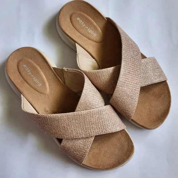 new without box Natural, woven crisscross straps hug the foot for a comfortable fit in this support... Show more