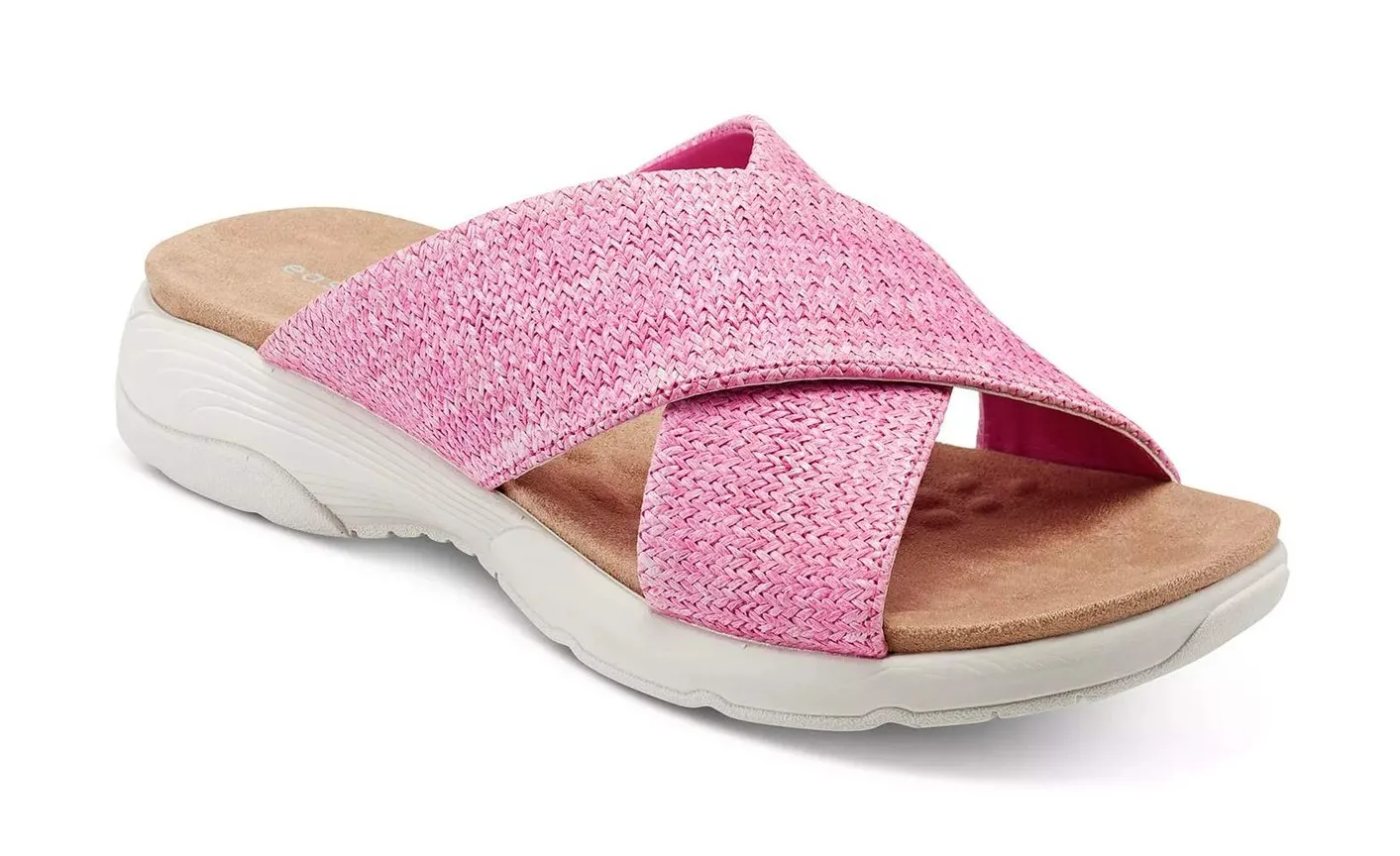 Easy Spirit's Taite crisscross slip on sandals have a lightweight molded Eva bottom and comfort, con... Show more
