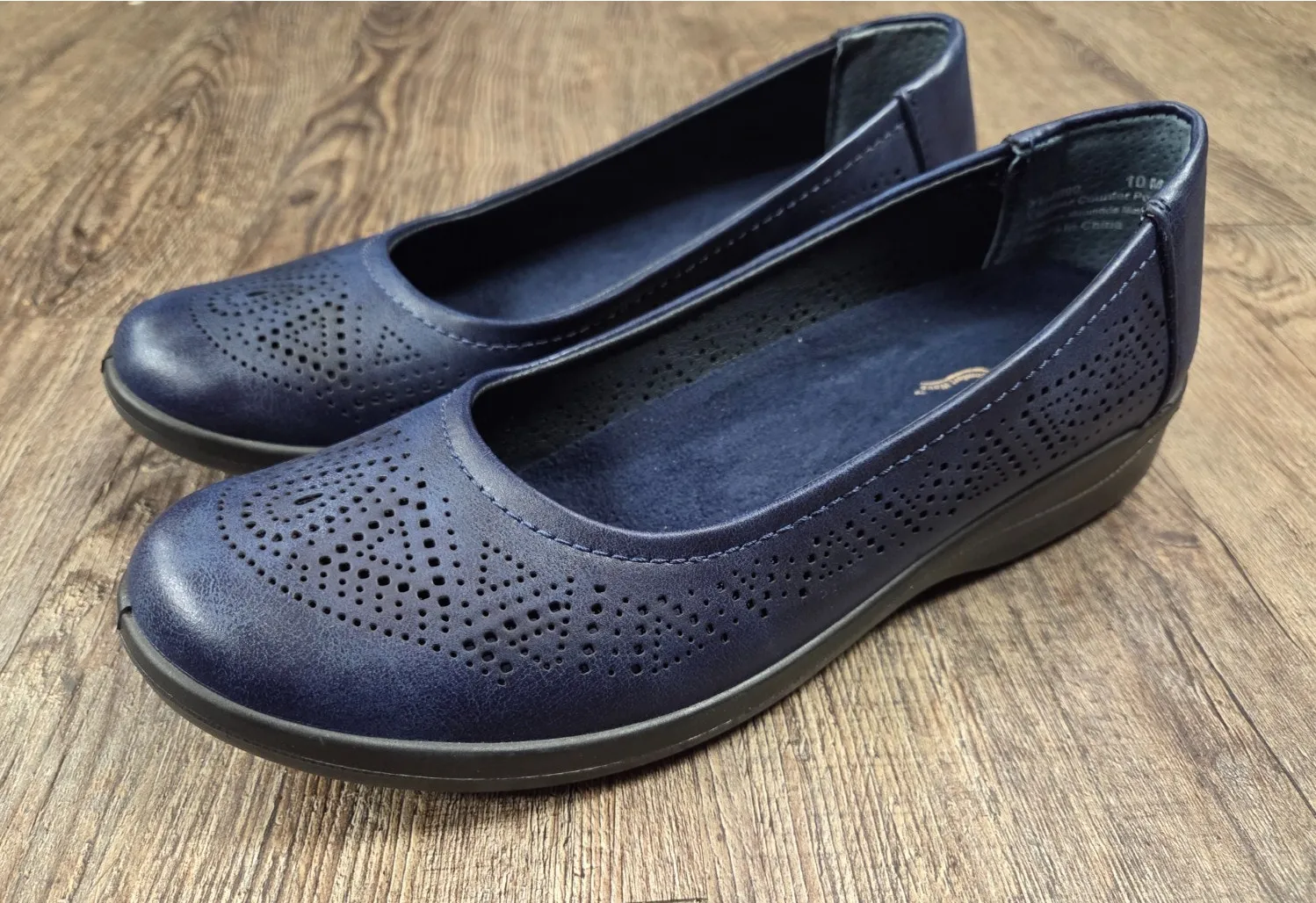 Easy Street Womens Tex Comfort Flats Faux Leather Perforated Navy 10M Shoes Blue Size 10 - $25 - From Mary