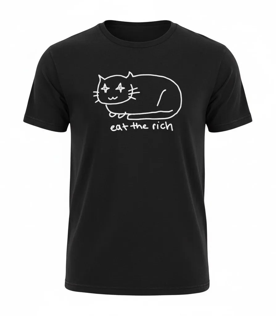 New with tags black unisex graphic t-shirt featuring a minimalist cat illustration with the phrase “eat the rich.” Soft, comfortable tee with a relaxed unisex fit. Bold statement piece with anti-capitalist, punk, and ironic humor appeal. Condition: NWT (New With Tags) Size: Small (Unisex) Color: Black Style: Graphic tee, slogan shirt Fit: Unisex / relaxed political graphic tee, eat the rich shirt, anti capitalist, punk aesthetic, ironic humor, alt fashion, indie streetwear, unisex tee, minimalist graphic, protest shirt, sarcastic style, edgy casual, internet culture, meme fashion, statement t shirt