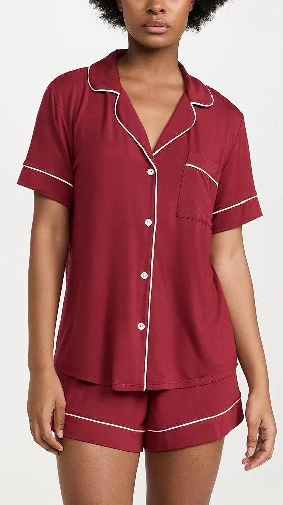 Eberjey Gisele pajama sangria top short sleeve modal shirt ivory piping pocket Red Size XL - $40 - From Filo