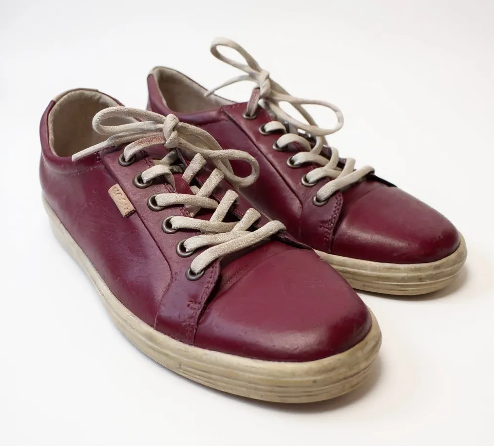 Discover comfort and classic style with these ECCO burgundy leather sneakers. These low-top shoes feature a clean silhouette and a secure lace-up closure, perfect for everyday wear. The rich burgundy hue adds a touch of sophistication to any outfit, making them a versatile addition to your wardrobe. Effortlessly elevate your casual look for weekend outings or relaxed evenings. Keywords: ECCO, sneakers, burgundy, leather, lace up, low top, casual, womens, everyday, comfortable, versatile Thanks for looking!!