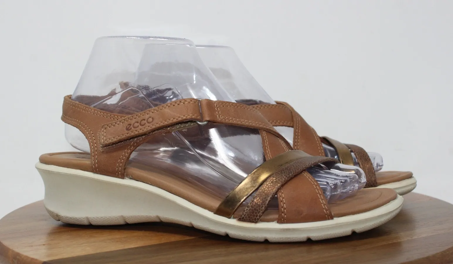 ECCO Womens Felicia Leather Wedge Sandals Brown Bronze Adjustable Strap Size 7 Condition: Excellent... Show more