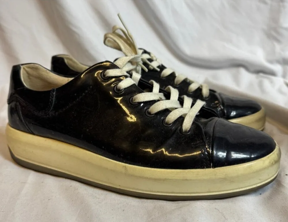 ECCO Women’s Black Patent Leather Lace-Up Sneakers – Size 40 (US 9/9.5) Sleek and stylish ECCO snea... Show more