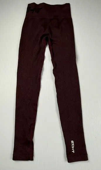These ECHT ribbed seamless leggings are perfect for any workout routine. Features a high-waisted design with a comfortable ribbed texture throughout. The burgundy color adds style to your athletic wardrobe. Ideal for yoga, gym sessions, running, or casual athleisure wear. The seamless construction ensures maximum comfort and unrestricted movement during exercise. Performance/Activity: Yoga, Gym Training, Running & Jogging, Pilates, CrossFit Color: Purple Department: Women Style: Compression Type: Leggings Features: Seamless, High Waisted, Ribbed, Compression, Quick Dry Fabric Type: Mesh Leg Style: Skinny Material: Polyamide Blend Occasion: Activewear, Casual Closure: Pull On Keywords: workout leggings, gym pants, athletic wear, yoga pants, seamless leggings, high waisted, ribbed, burgundy, fitness, activewear, exercise clothing, sports wear