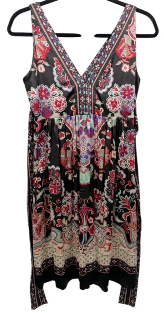 ECI Sleeveless Colorful Floral Print Silk‎ Dress 6 Black - $37 - From Michelle