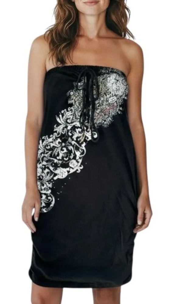 Ecko Red Allover Print Black Ruched Side Tube Bodycon Dress✨ Size: XS✨ Pre Loved✨ Color: Black✨ Ecko Red Allover Print Black Ruched Side Tube Bodycon Dress. Solid black. Silver print on the front & back with rhinestones. Side ruching. Stretch fabric. Strapless. Halter tie. This item does have signs of wear as shown above in photos✨ Buy now or submit an offer today✨ ⭐️No Trades ⭐No Modeling ⭐️Use The Offer Button ⭐️Free Gift With Every Order ⭐️Same Day / Next Day Shipping