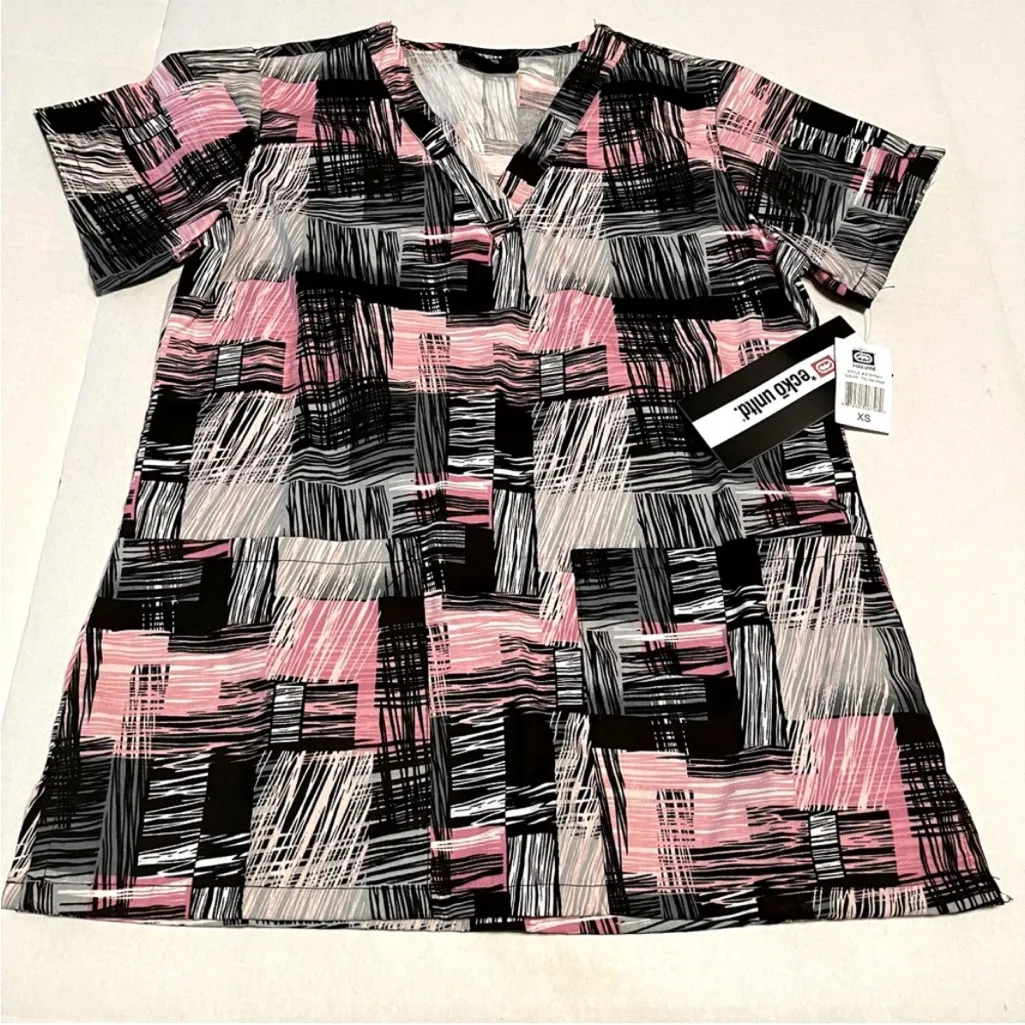 ECKO Unltd. Womens Size‎ XS Pink Tic Tac Scrub Top Medical Healthcare Dental NEW Black - $26 New With Tags - From Jamie