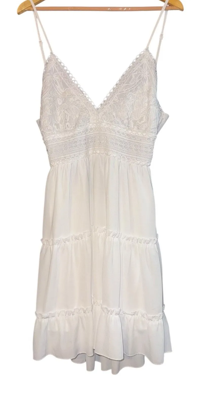 Ecowish Lace Tiered Mini Dress Open Tie Back Women's Large Wedding Beach Resort White - $27 - From Amber